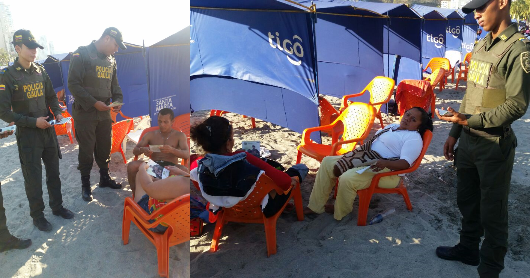 En actividades que se adelantan en jurisdicción de la Metropolitana de Santa Marta, personal adscrito a la Unidad Antiextorsión y Antisecuestro (Gaula), realizó diferentes campañas mediante charlas a la comunidad del sector del Mercado Público, playas, balnearios, sitios turísticos, de esta Ciudad.