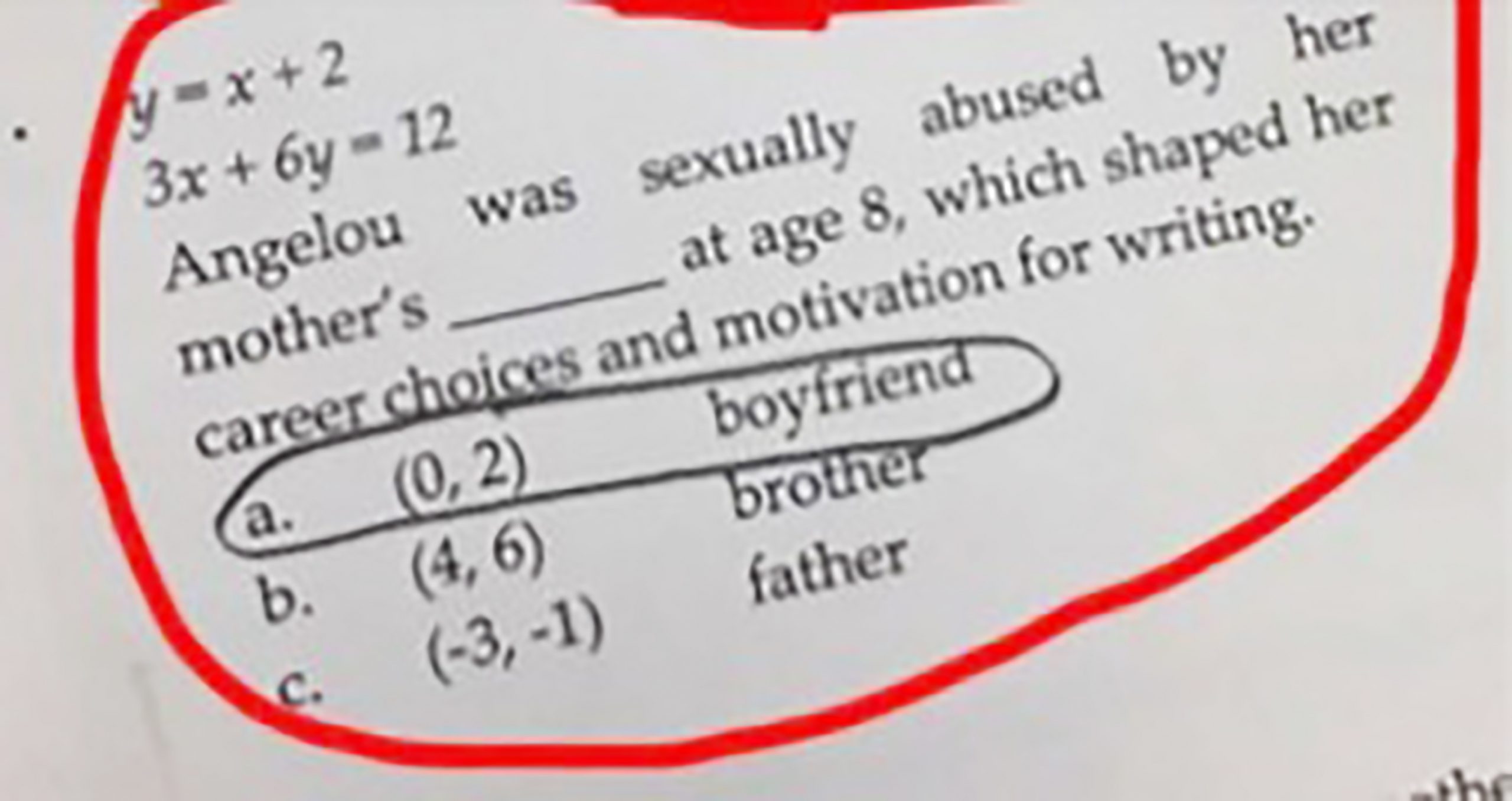 “Angelou fue abusada sexualmente por el _______ de su madre a los ocho años, lo que moldeó sus decisiones profesionales y su motivación por la escritura”
