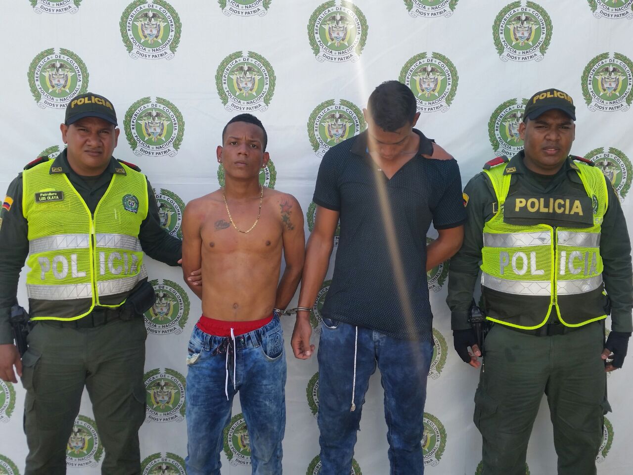 Gracias a la rápida reacción de la patrulla del cuadrante de la Estación Santa Marta, personal adscrito al Caí Los Almendros, capturaron en flagrancia a LEONARDO GARCÍA ENRIQUE THAGUANO, de 18 años de edad, WILSON OSORIO AGUILAR, alias ‘EL MENOR’ de 18 años de edad y un menor de 17 años de edad, por los delitos de ‘Daño en Bien Ajeno, Hurto y Tráfico y Fabricación de Armas de Fuego’.