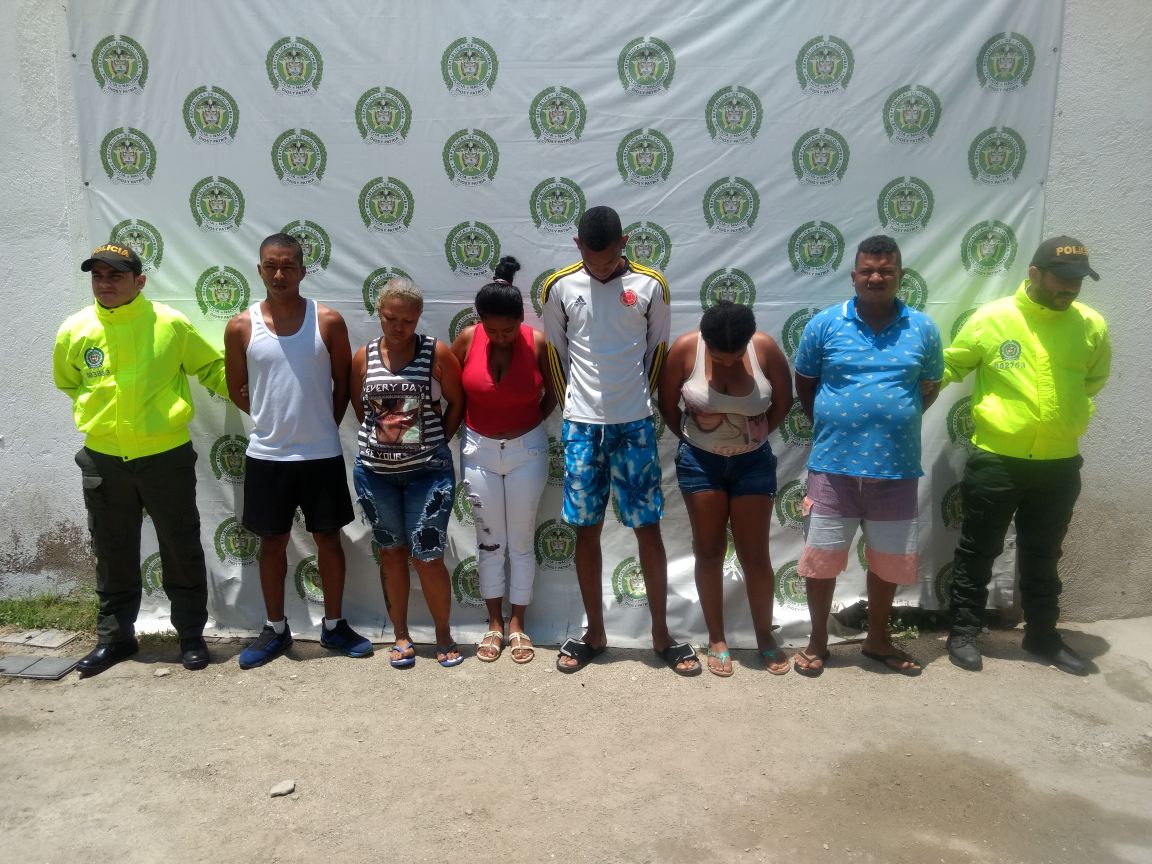Los capturados fueron identificados como Yorelis Patricia Ramirez Manjarres, alias ‘Yorlis’; Nelson Enrique Martínez Morelo, alias ‘Chato’; Martha Lucia Montes Pérez, alias ‘La Mona’; Maryuris Cecilia Freyle Garzón, alias ‘Maryuris’; Jhonatan Javier Lubo Martínez, alias ‘Cachete’; y Manuel David Iguarán Rosenthil, alias ‘Virolo’.