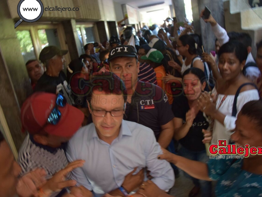 Hace algunos minutos llegaron al edificio Galaxia para la audiencia de legalización de captura e imputación de cargos, el exalcalde Carlos Caicedo Omar y el suspendido alcalde Rafael Martínez.