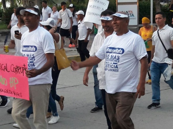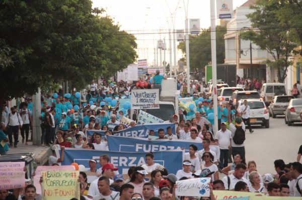 Los samarios convocaron esta marcha para mostrar su apoyo a Carlos Caicedo y Rafael Martínez, por la situación jurídica que afrontan, debido a las investigaciones por parte de la Fiscalía por presuntas irregularidades en la construcción de cinco puestos de salud en el Distrito.