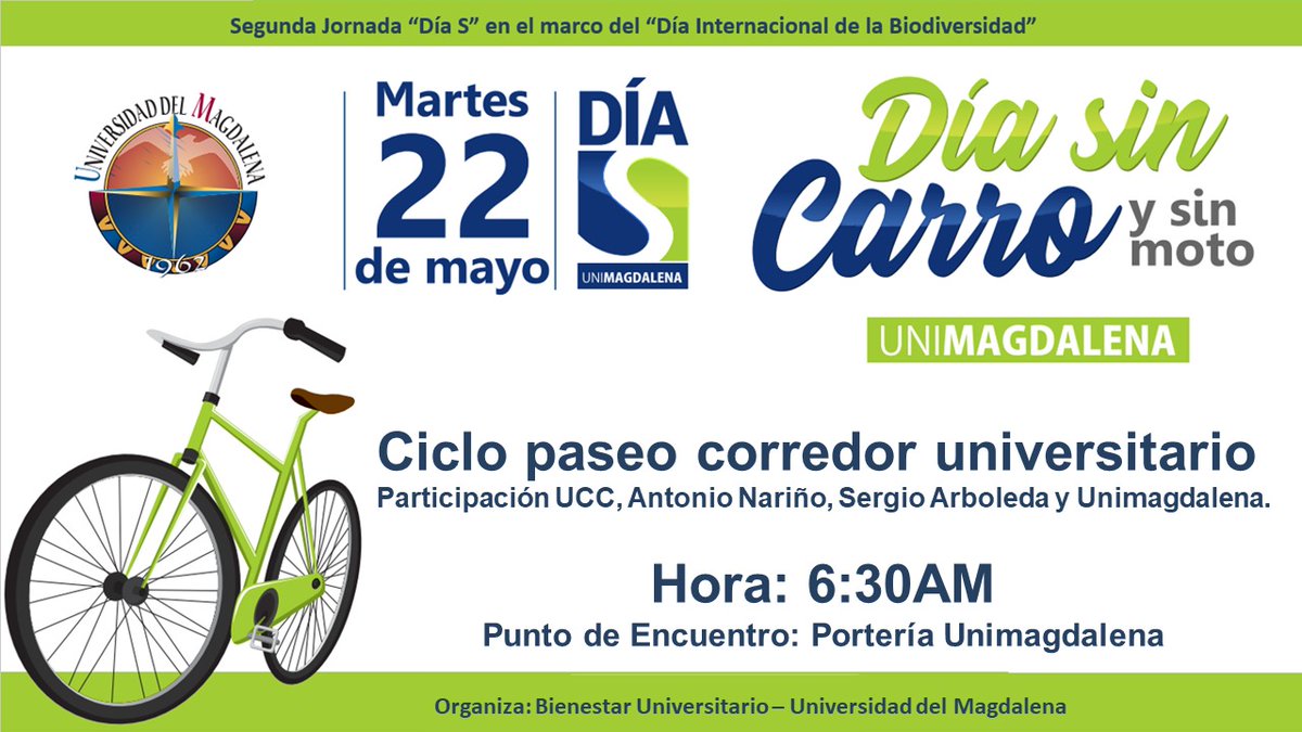 Cultura Segunda jornada del ´Día S´ Día sin carro y sin moto en Unimagdalena Published 8 años ago on 21/05/2018 By elcallejero En el marco del Día Internacional de la Biodiversidad mañana martes 22 de mayo a partir de las 6:30am se llevará a cabo el segundo ciclo paseo por el corredor universitario. El punto de encuentro: Entrada Universidad del Magdalena Related Topics: You may like Advertisement Lo último Judiciales5 horas ago Con panfletos y plata en mano: así cayó alias “Jesús”, presunto extorsionista Magdalena5 horas ago Puente de La Piragua: la alternativa que desembotellará el tráfico de hasta 30 mil vehículos diarios Magdalena5 horas ago La gobernadora Margarita Guerra llevó ayudas humanitarias a 220 familias damnificadas Lo Último10 horas ago Incendio en condominio del Rodadero generó momentos de tensión Magdalena1 día ago Gobernación del Magdalena contrata el intercambiador vial de La Piragua Magdalena2 días ago Gobernación del Magdalena verifica calidad y cumplimiento del PAE en Pivijay