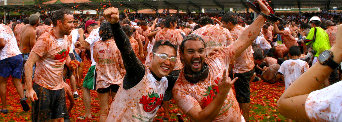 Durante el evento, inspirado en el que se realiza en Buñol (España), miles de visitantes se trenzan en una batalla en la que se arrojan tomates. También se organizan muestras de artesanías y concursos relacionados con el tomate.