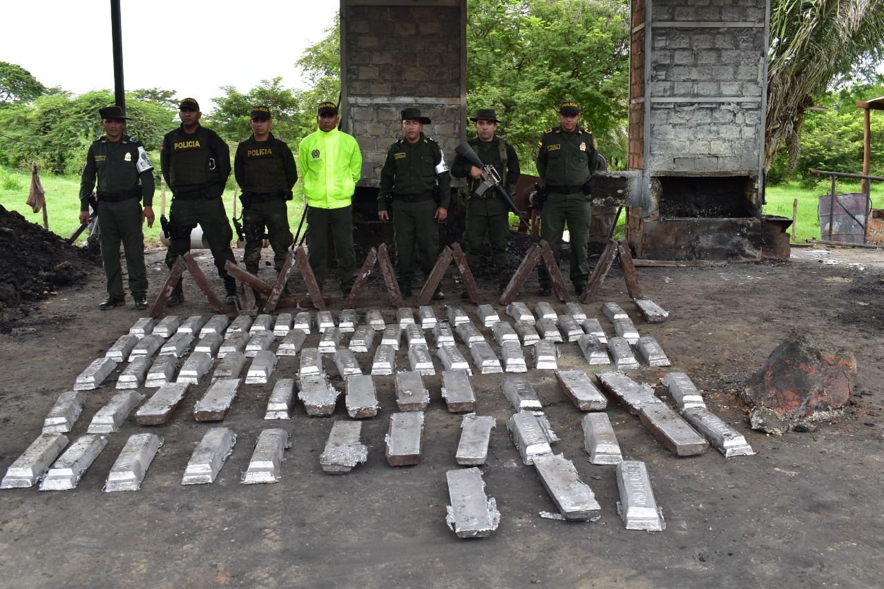 Por lo cual los Uniformados encontraron al interior de la planta una gran cantidad de carbón mineral, 23 moldes para fundir plomo con el logo de PLASTIPLOMO avaluados en $ 9.200.000, maquinaria como es monta carga, equipos de soldaduras y en una de las bodegas dos armas de fuego (revolver calibre 38 milímetros cargado con 06 cartuchos y una caja con 20 cartuchos para el mismo y una escopeta calibre 16 milímetros) y los Policías siguiendo con el recorrido en la finca observan una estructura construida en ladrillos con unos tubos metálicos para el escape del humo y unas pilas de un material de color negro revuelto con pequeñas partículas de plomo; al acercarse al lugar los uniformados encuentran cerca de 84 lingotes fundidos de plomo con un peso aproximado de 40 kilos cada uno avaluados en un valor total de 252 millones doscientos mil pesos, de igual manera se hallan cuatro tulas grandes de aserrín de acero avaluado en $4.000.000, por los uniformados proceden a la incautación de los equipos, maquinarias, insumos, armas de fuego con la munición y los lingotes de plomo y capturar a las personas que se encontraban en el lugar por el presunto delito de ‘Contaminación Ambiental’.