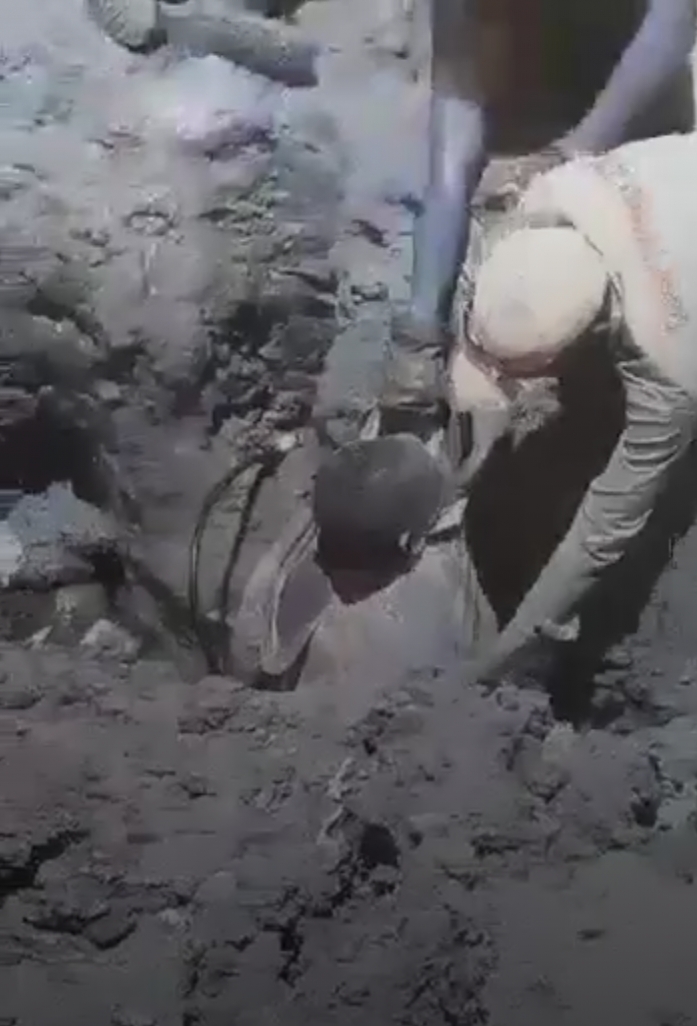 Según testigos, el siniestro se registró cuando se desplomó parte del trabajo, dejando a tres de los trabajados atrapados entre el barro.