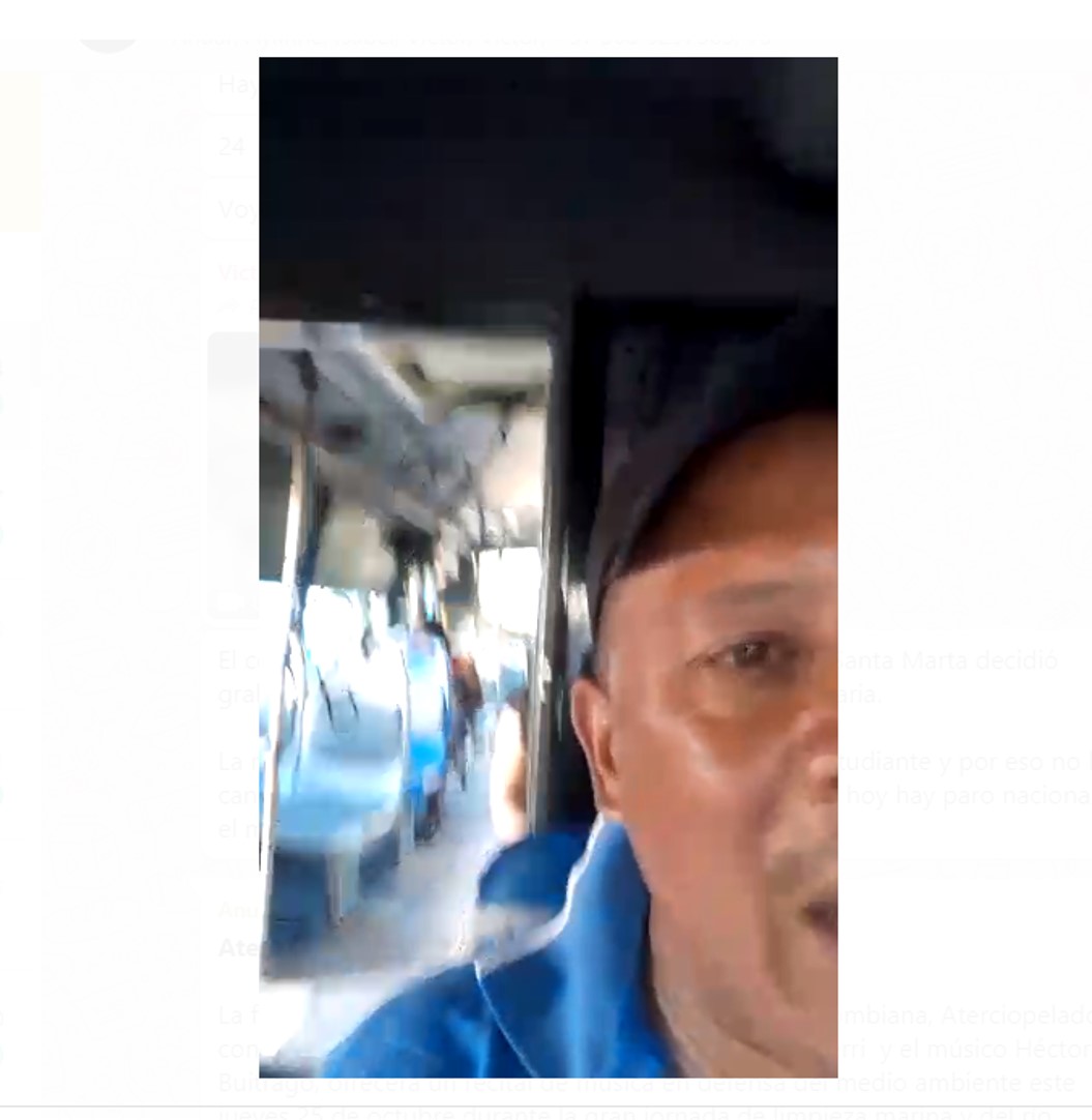 El conductor de una buseta del transporte público de Santa Marta decidió grabar con su celular la exigencia y escándalo de una usuaria.