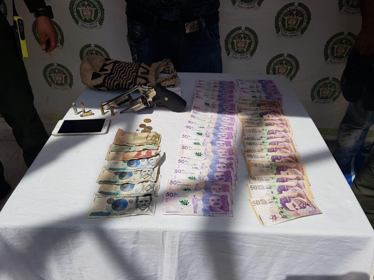 En el operativo les hallaron un revolver marca Smith y Wesson, calibre 38 largo, con 4 cartuchos para el mismo y dos vainillas. Además un millón 980 mil pesos en efectivo y un celular Huawei, color blanco avaluado en 600 mil pesos.