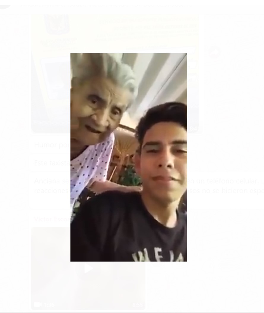 Curiosidades Anciana se sorprende al verse por primera vez en un teléfono celular Published 7 años ago on 30/11/2018 By elcallejero Las reacciones y los comentarios cariñosos no se hicieron esperar. Y quién no se llenaría de ternura al ver a su abuelita sorprendida al verse por primera vez en un teléfono celular. https://elcallejero.co/wp-content/uploads/2018/11/WhatsApp-Video-2018-11-30-at-8.55.22-AM-1.mp4 Related Topics: You may like Advertisement Lo último Judiciales1 día ago Con panfletos y plata en mano: así cayó alias “Jesús”, presunto extorsionista Magdalena1 día ago Puente de La Piragua: la alternativa que desembotellará el tráfico de hasta 30 mil vehículos diarios Magdalena1 día ago La gobernadora Margarita Guerra llevó ayudas humanitarias a 220 familias damnificadas Lo Último1 día ago Incendio en condominio del Rodadero generó momentos de tensión Magdalena2 días ago Gobernación del Magdalena contrata el intercambiador vial de La Piragua Magdalena2 días ago Gobernación del Magdalena verifica calidad y cumplimiento del PAE en Pivijay