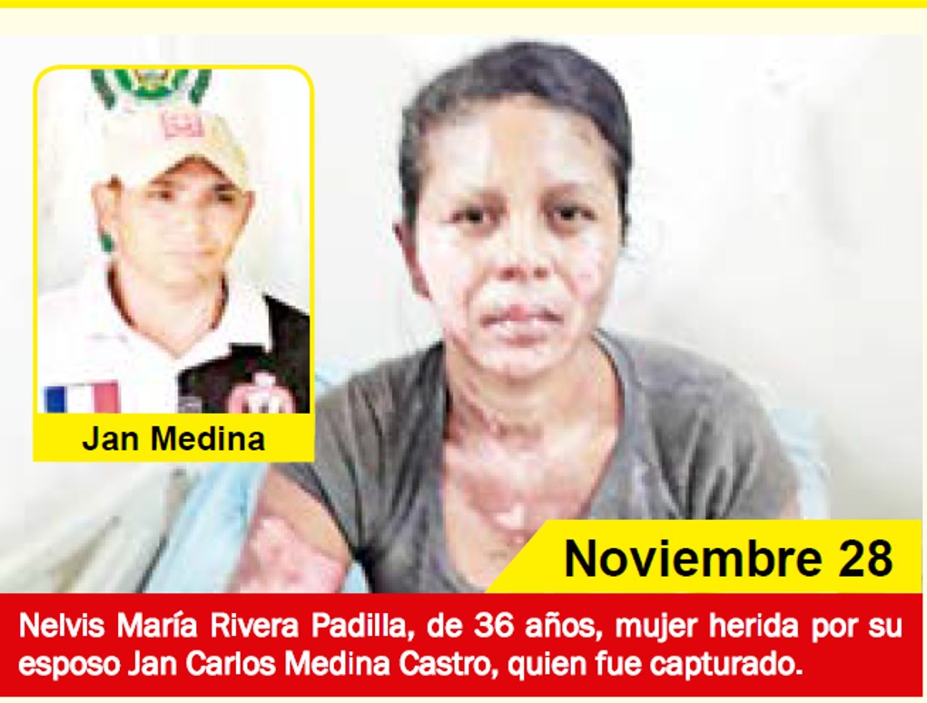 La víctima de este nuevo hecho de intolerancia fue Nelvis María Rivera Padilla, de 36 años, quien sufrió quemaduras de tercer grado en el rostro y varias partes de su cuerpo. El presunto agresor fue su propio esposo, a quien identificaron como Jan Carlos Medina Castro, de 40 años.