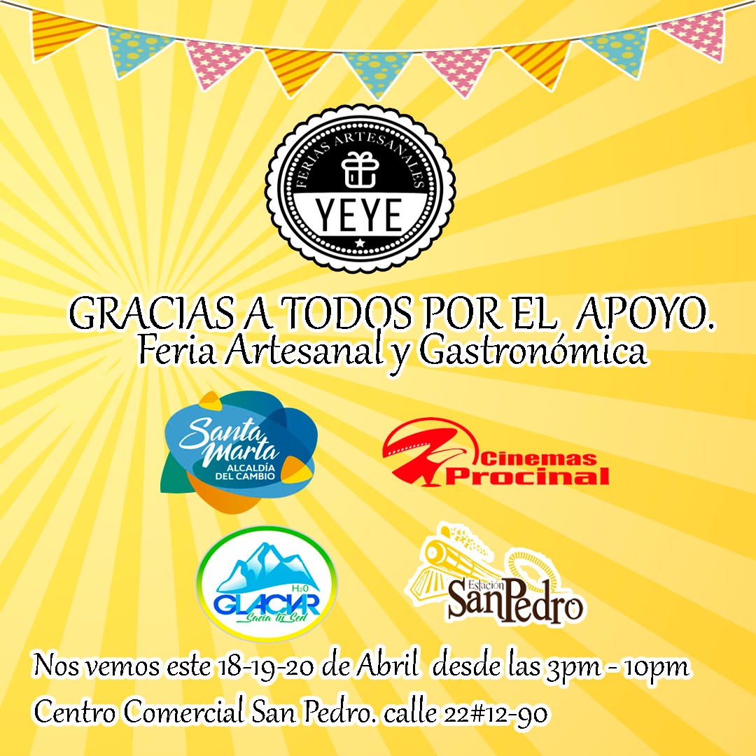 Este espacio es liderado por Yenifer Gaviria Manjarrez, quien precisó, que “Ferias Yeye le estará brindando un espacio a todas esas nuevas marcas artesanales. Habrá 50 emprendedores entre samarios y visitantes que estarán exponiendo sus productos orgánicos, hechos en casa y con amor”.