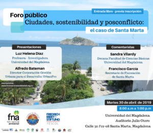 Con el objetivo de aportar a la evaluación de las políticas urbanas luego de los acuerdos de paz, la Universidad del Magdalena acogerá este martes 30 de abril el foro público “Ciudades, Sostenibilidad y Posconflicto: el caso de Santa Marta”, evento donde se tratarán los retos del Distrito con relación a los impactos del cambio climático, sostenibilidad urbana, crisis del agua, inequidad económica, entre otras temáticas principales.