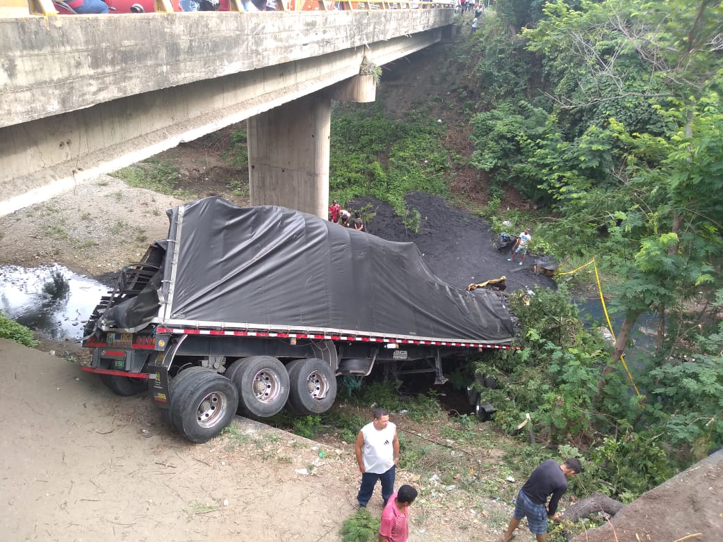 El hecho se registró pasada las 11:00 p.m. en el puente Aguja, a la altura de Tucurinca, Zona Bananera. El conductor pudo ser rescatado hasta las 3:00 a.m. el carbón que lo sepultó hizo complejo el rescate de este, se desconoce si el hombre aun continua con vida.