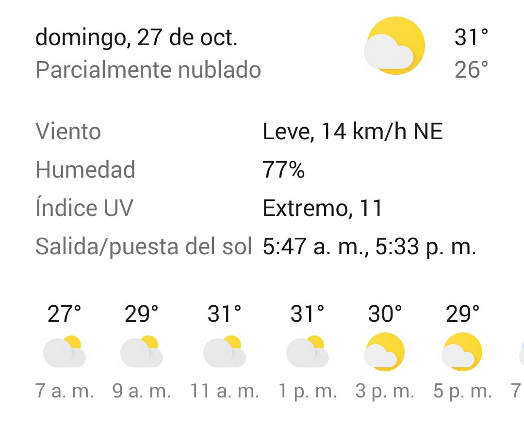 Fundación: Cielo mayormente nublado. Se espera una temperatura de 29° grados centígrados.