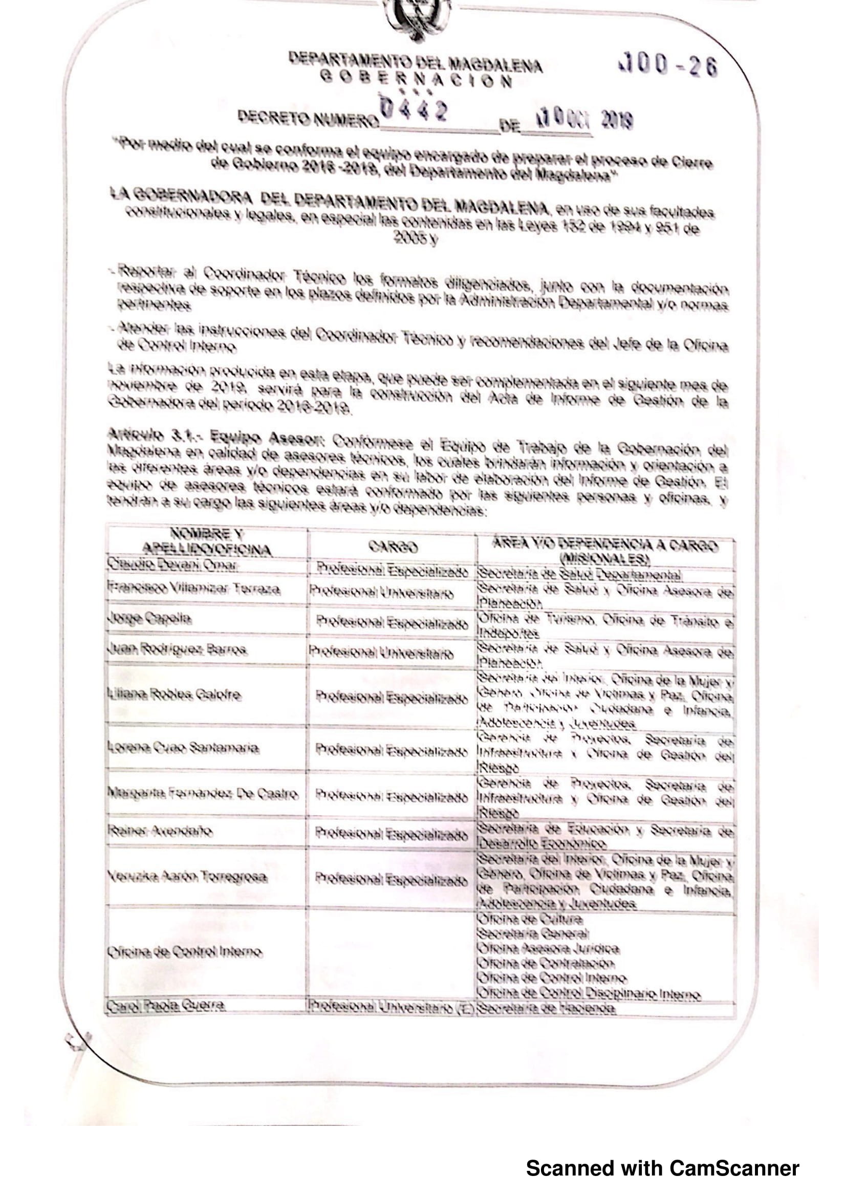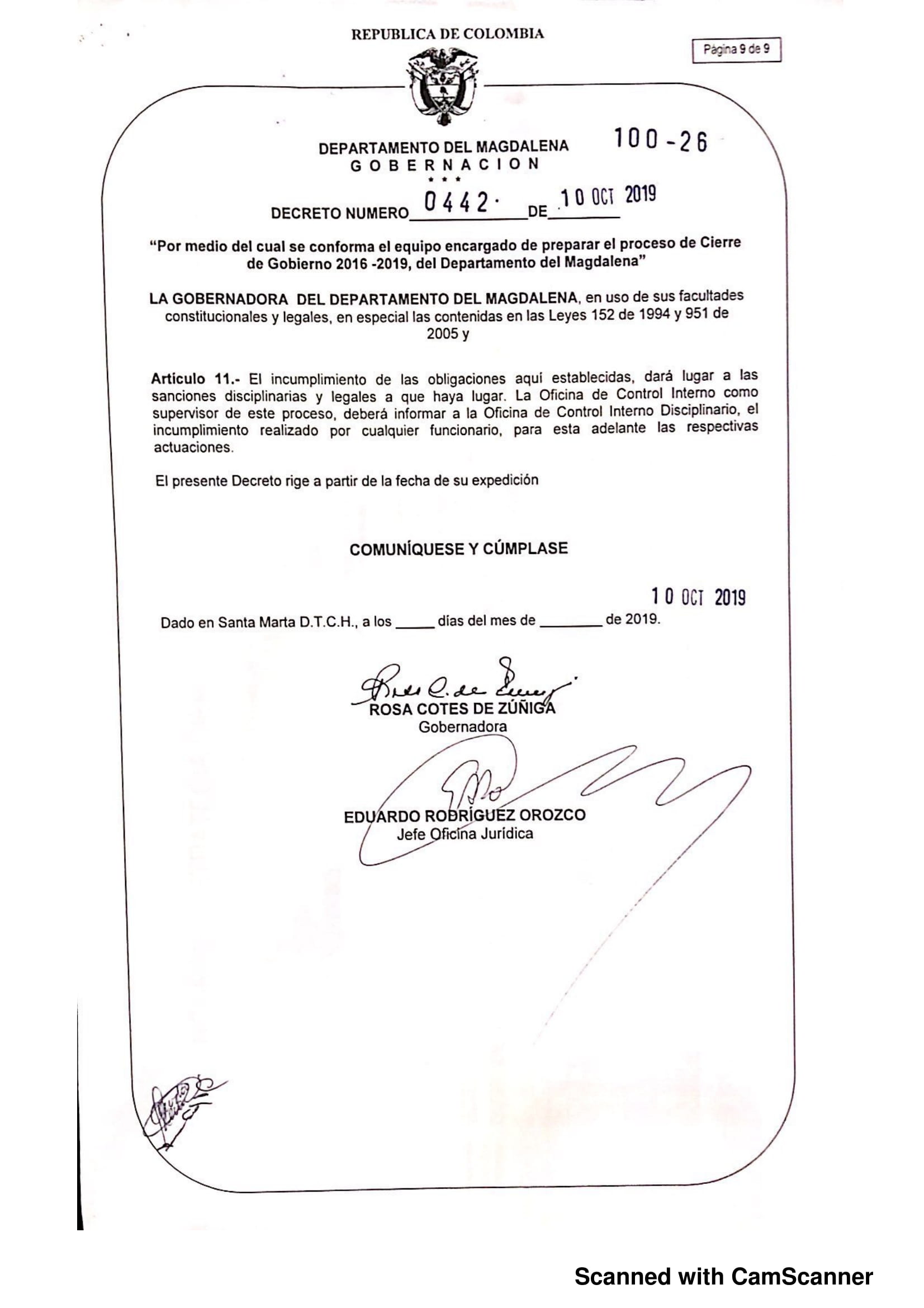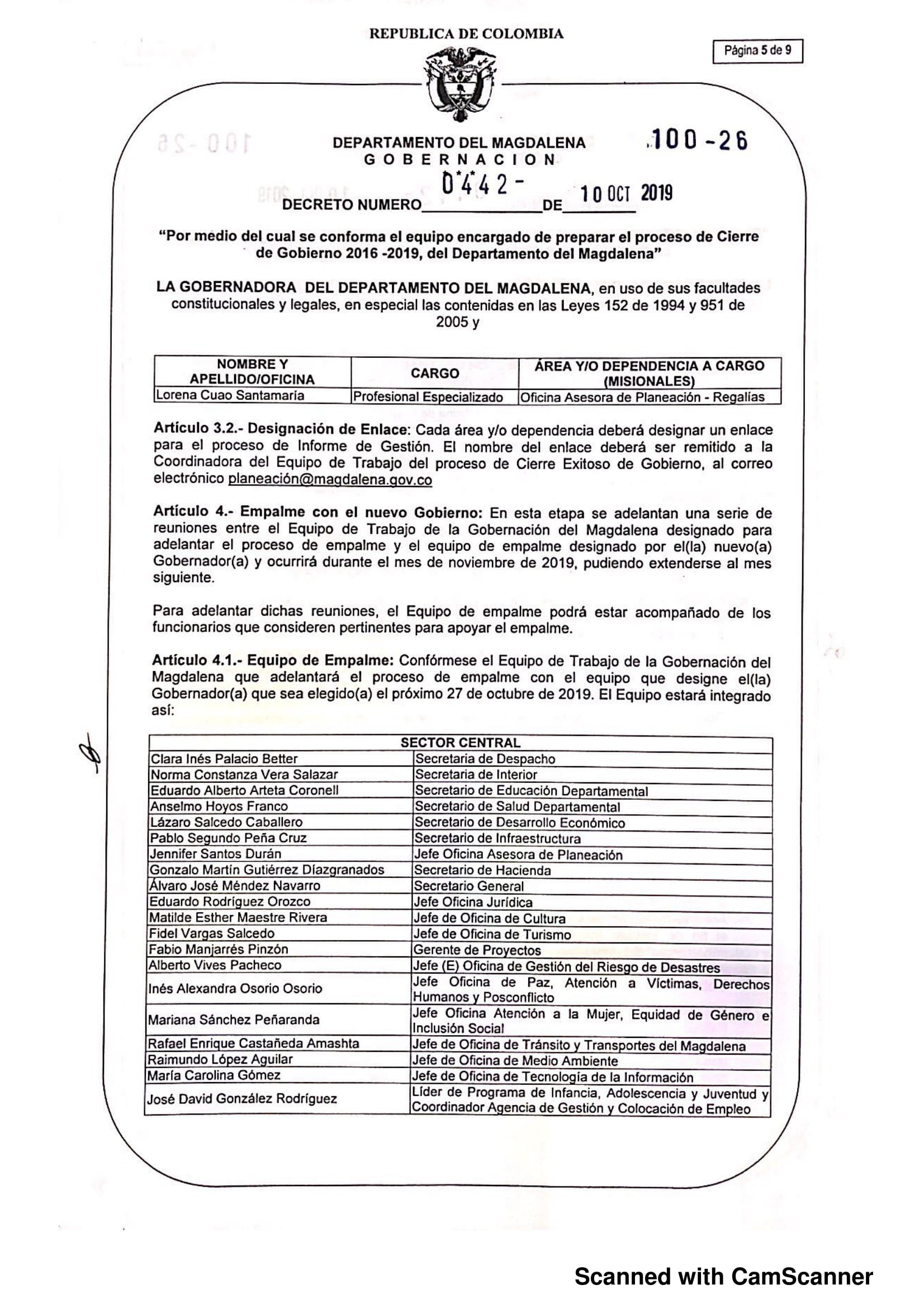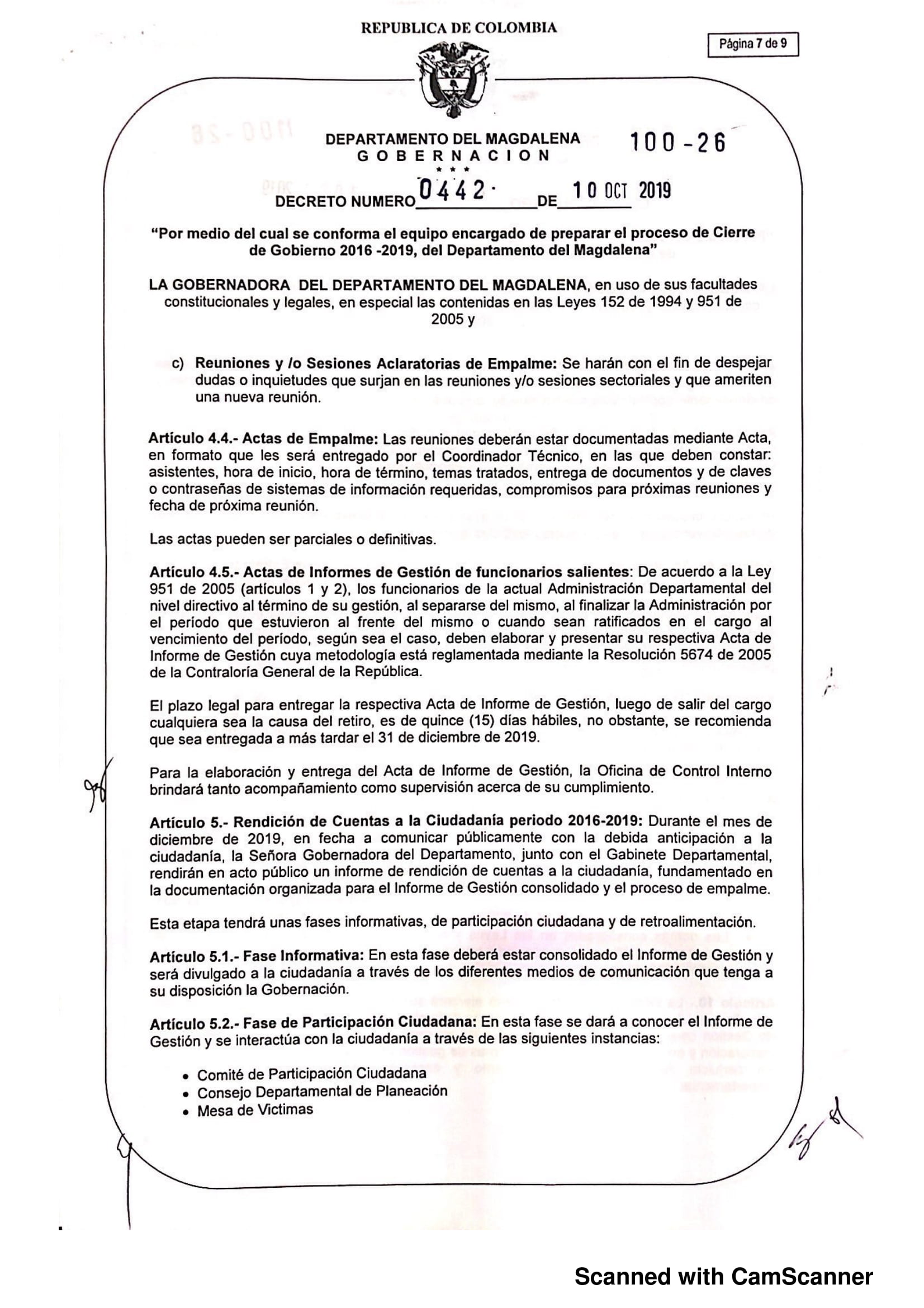 De igual forma, cumpliendo con el principio de transparencia, la Mandataria Departamental, mediante Decreto 0442 del 10 de octubre de 2019, entregó directrices a su equipo de gobierno sobre la dinámica de este ejercicio de empalme, con el objetivo de facilitar el cierre exitoso de la actual administración y el inicio del gobierno entrante.