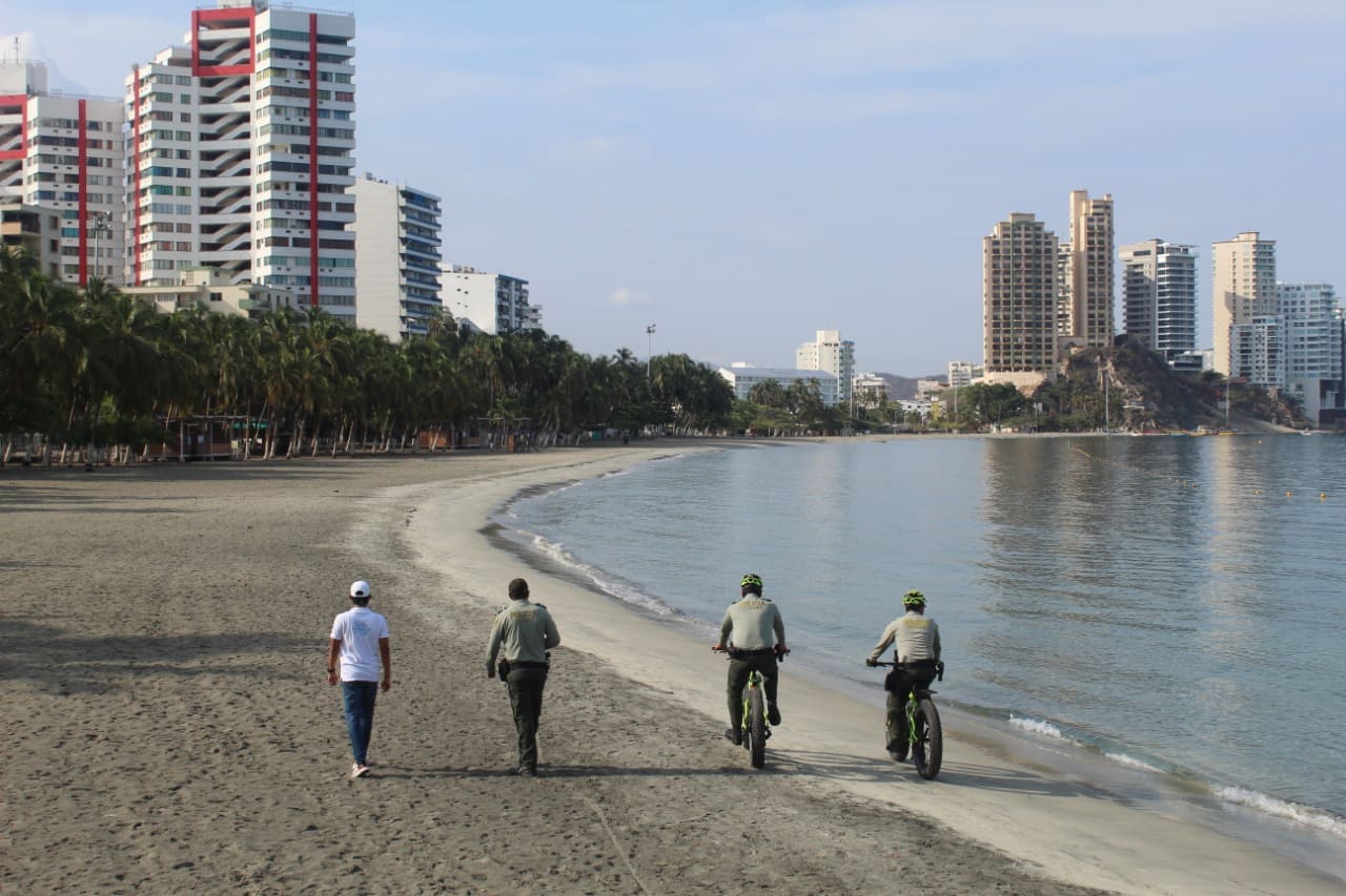 La Policía Metropolitana de Santa Marta, continua con los operativos de control en las playas de la ciudad, esto con el fin de evitar la presencia de bañistas y personas que pretendan hacer ejercicio en los balnearios, y que estén en desacato de las medidas de la cuarentena obligatoria y el aislamiento preventivo.