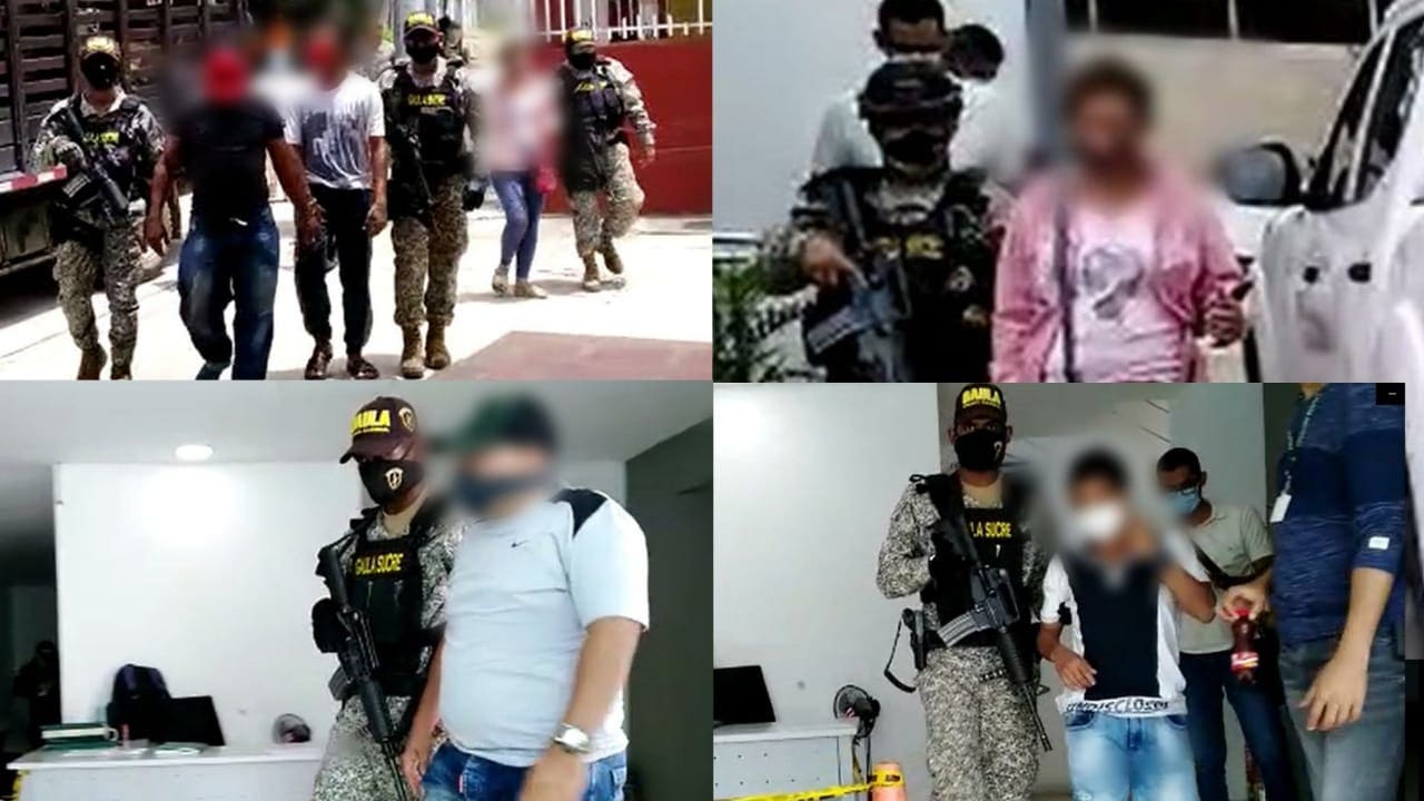 La exitosa operación que permitió la captura de estos sujetos se dio gracias un minucioso trabajo de seis meses de investigación realizado por agentes de inteligencia naval de la Armada y la Seccional de Investigación Judicial de la Policía, logrando efectuar el seguimiento e identificación de estos sujetos, que mediante una diligencia de allanamiento, tropas del Grupo de Acción Unificada por la Libertad Personal, Gaula Sucre, con efectivos de la Policía y la Fiscalía capturaron a estas 10 personas, sindicados de los delitos de concierto para delinquir, homicidio agravado, tráfico de estupefacientes y extorsión.