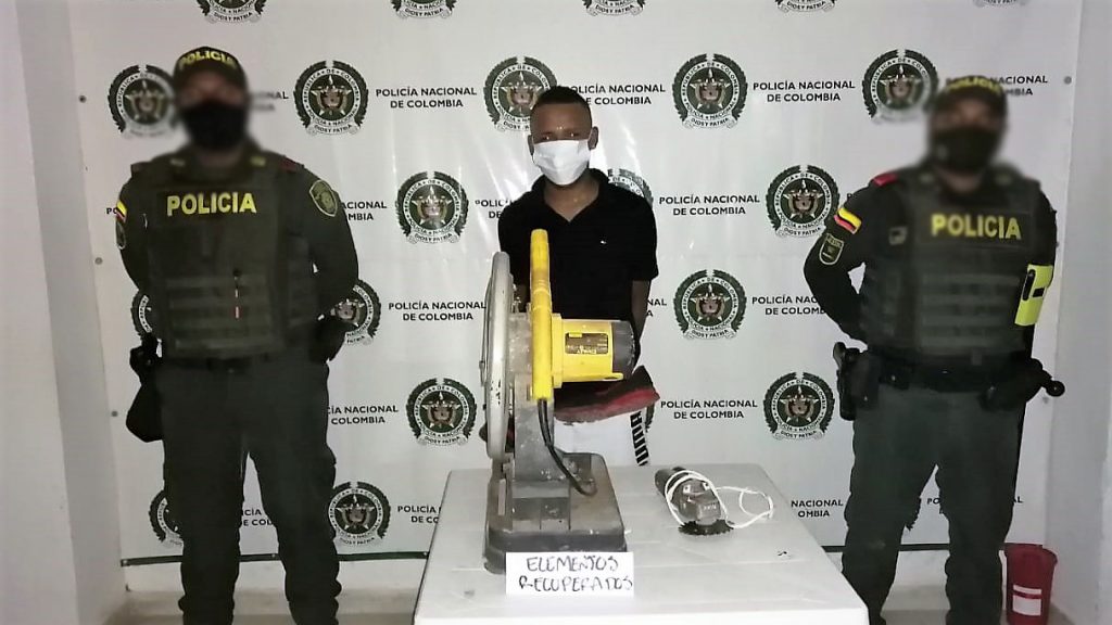 Uno de los casos se presentó la madrugada del domingo, cuando el cuadrante realizaba labores de patrullaje en el sector de la calle 7 de Fundación, siendo alertado por un ciudadano, quien manifiesta a ver visto ingresar un individuo a la sede de la Corporación Universitaria, por lo que de inmediato los uniformados observan a un individuo que intenta huir del lugar, arrojando por el camino una sierra para cortar madera y una pulidora, por lo que fue alcanzado y capturado por los Policías e identificado como Jesús David Barraza Castañeda de 22 años de edad y dejado a disposición de la Fiscalía por el delito de hurto.