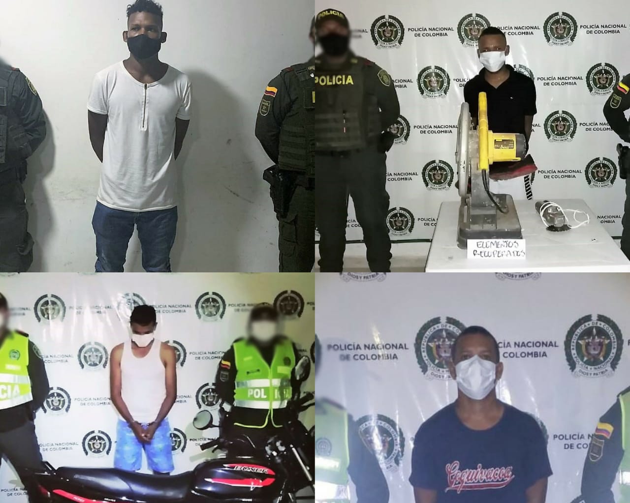La policía del Magdalena capturaran en flagrancia a cuatro hombres posterior a que habrían robado a otros, recuperándose dos motocicletas, un celular y dos máquinas cortadoras.