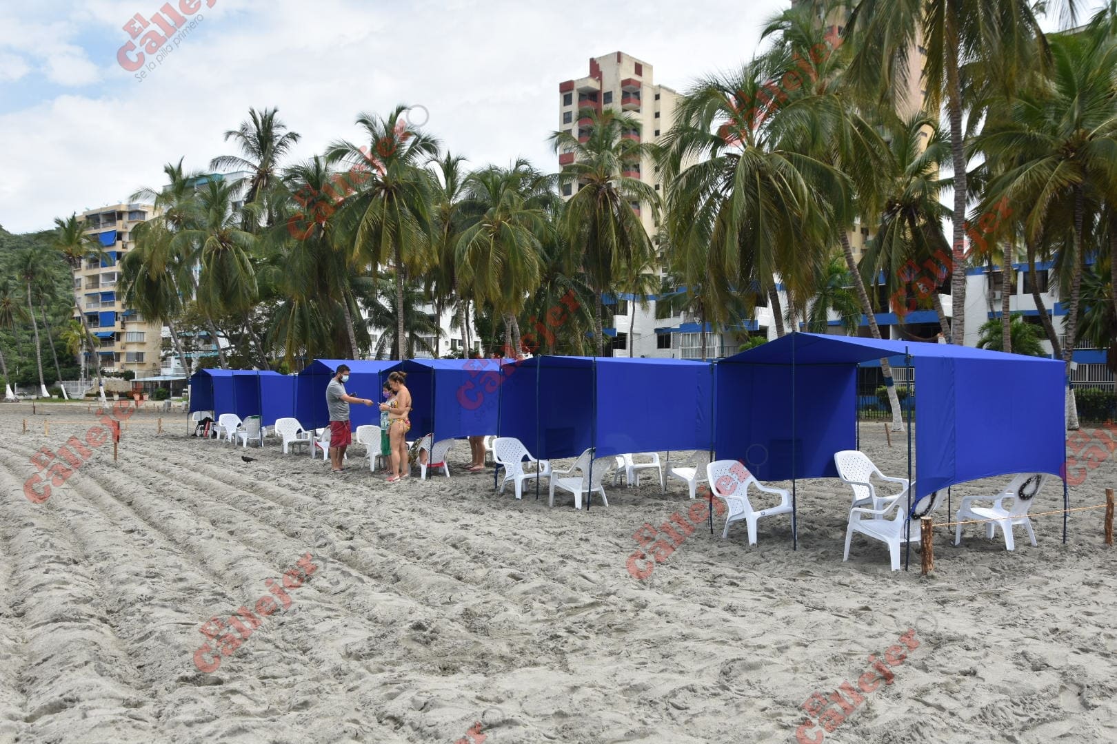 Para el ingreso a la playa, funcionarios de la Alcaldía se encargaban de cerciorarse de la reserva del asistente, le tomaban la temperatura y hacían la desinfección para la posterior entrada.