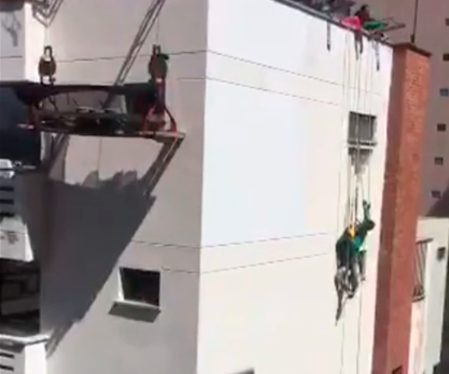 Los dos obreros se encuentran a salvo, gracias a la llamada ‘línea de vida’, tras quedar colgados de un edificio al norte de Barranquilla, tras caer el andamio colgante donde trabajaban. Los obreros duraron varios minutos colgando hasta que los bomberos llegaron al rescate.