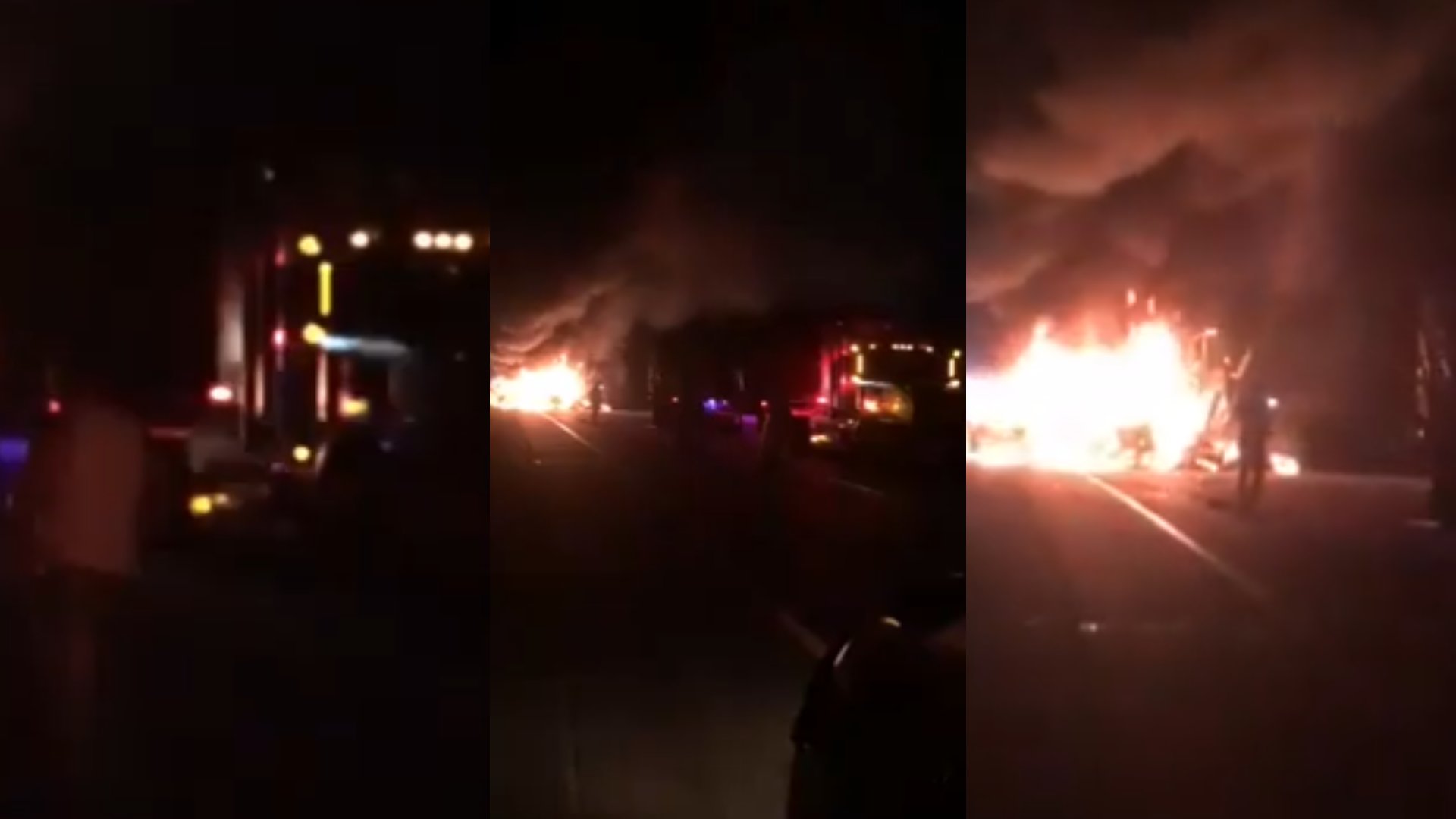 Producto del fuerte choque, se presentó un incendio por lo que fue necesaria la presencia del Cuerpo de Bomberos, para la extinción de las llamas.