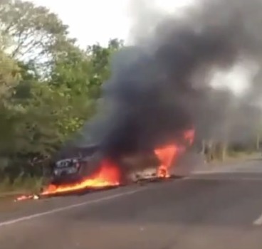 Este lunes, luego de más de 24 horas del siniestro vial donde también salieron lesionados los ocupantes del carro de marca alemana, el carro en cuestión fue encontrado incinerado luego de que un grupo de desconocidos le prendiera fuego.