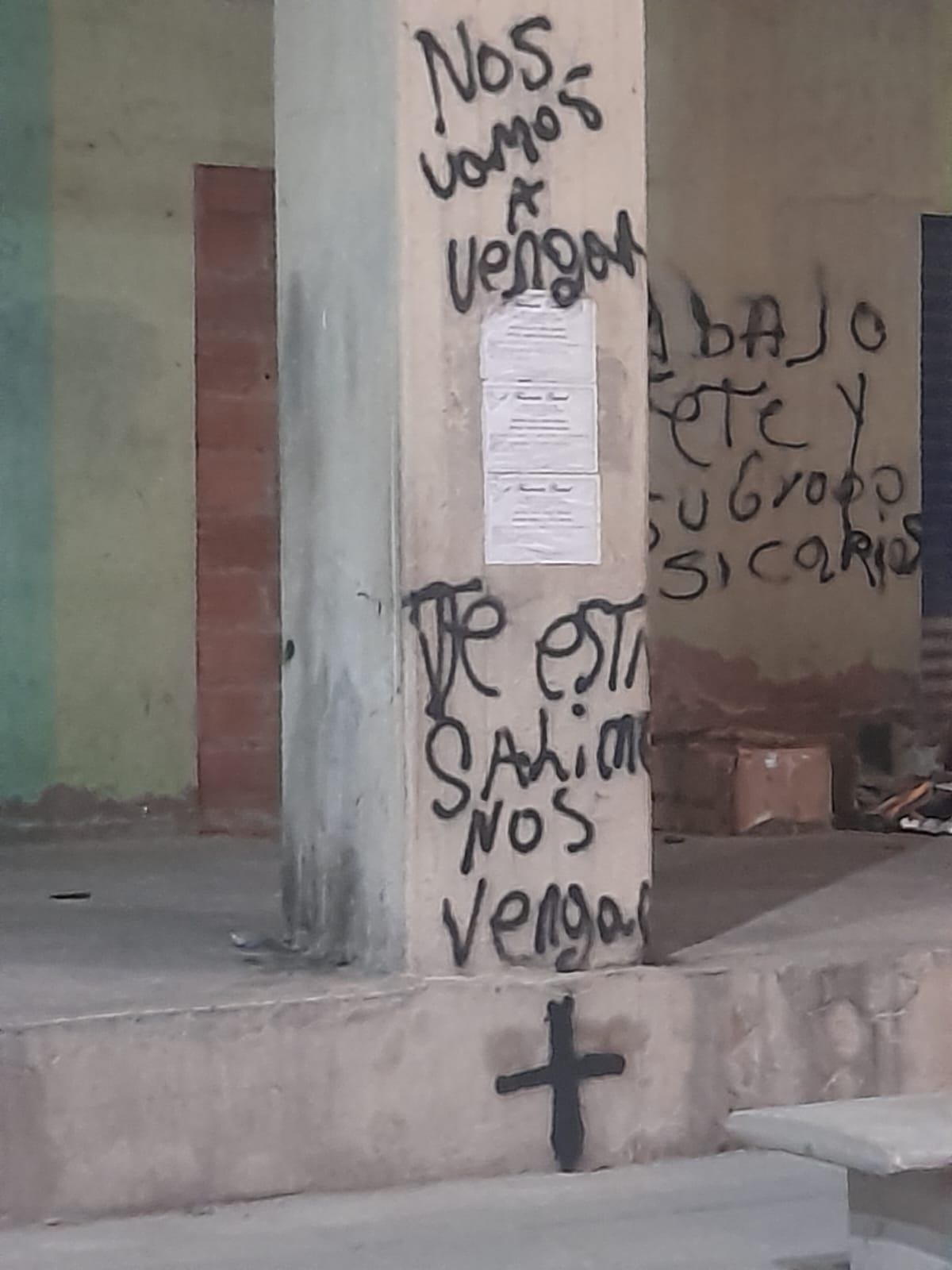 Los grafitis fueron pintados por el sector del mercado público, en uno de ellos se puede leer lo siguiente: «Pichi nosotros somos extijera, nosotros sabemos matar».