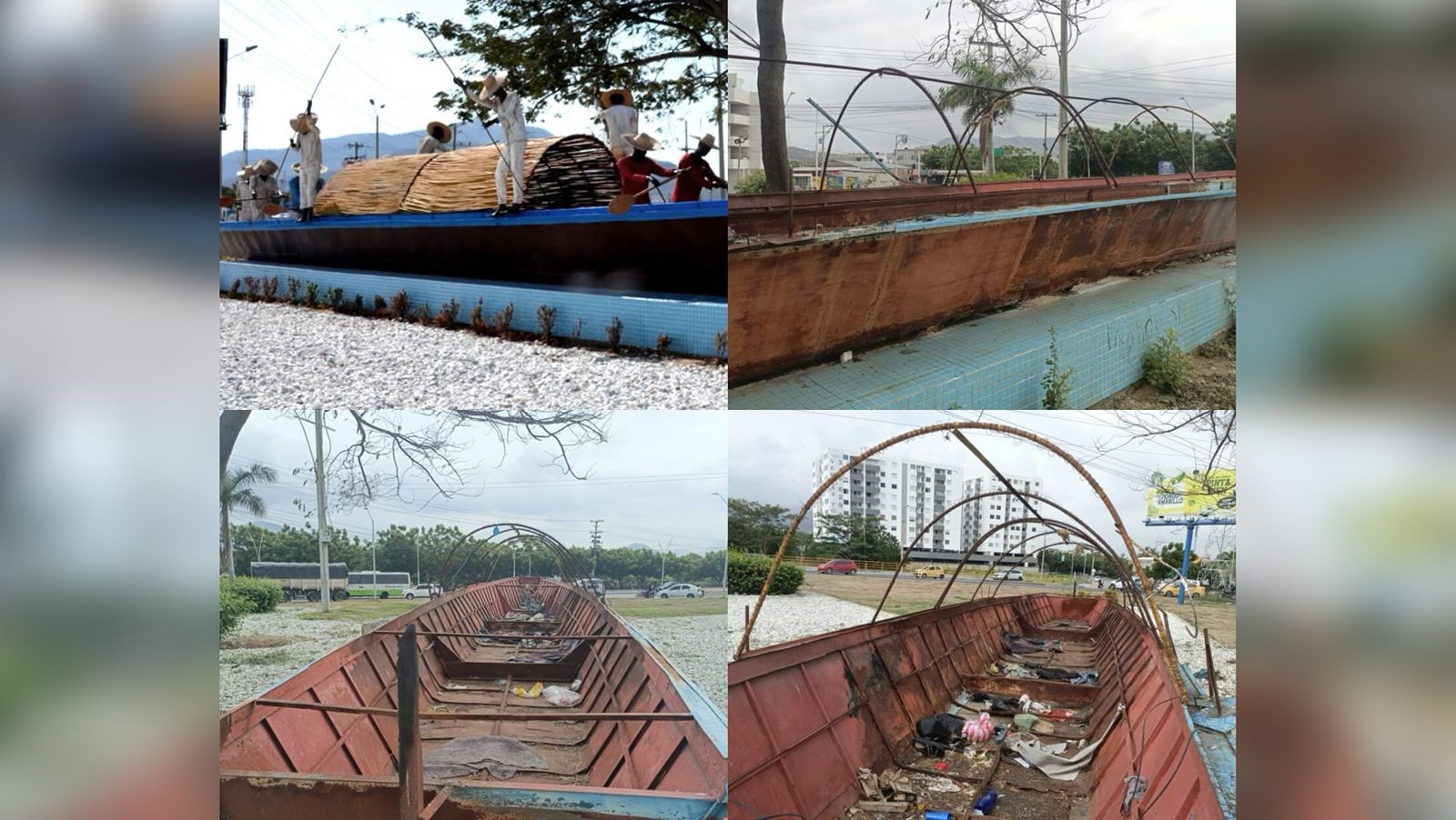Cuando las autoridades y entidades pertinentes quisieron retirar a estas personas en condición de calle del monumento porque estaban haciendo uso inapropiado del lugar, días después se conoció que le prendieron fuego a la obra, ocasionando que las figuras representativas de los pescadores y toda la estructura que compone ‘La Piragua’ se dañaran por completo.