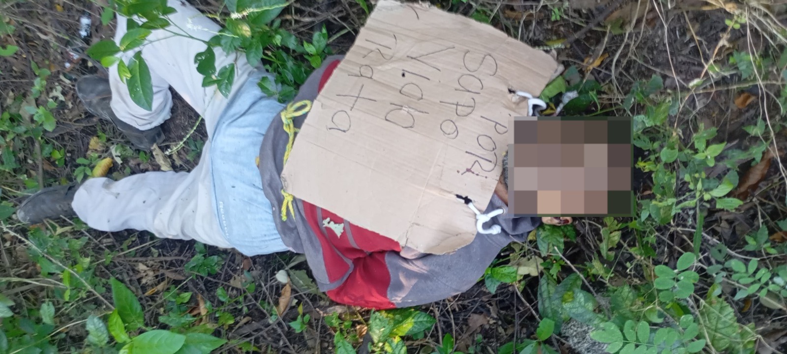 El cuerpo fue hallado por personas que transitaban por el sector, quienes al ver la escena de inmediato avisaron a las autoridades. Según el reporte de las autoridades, el occiso, quien presentaba heridas de arma de fuego, tenía un cartel en el que se leía: “por sapo, violo y rata”.