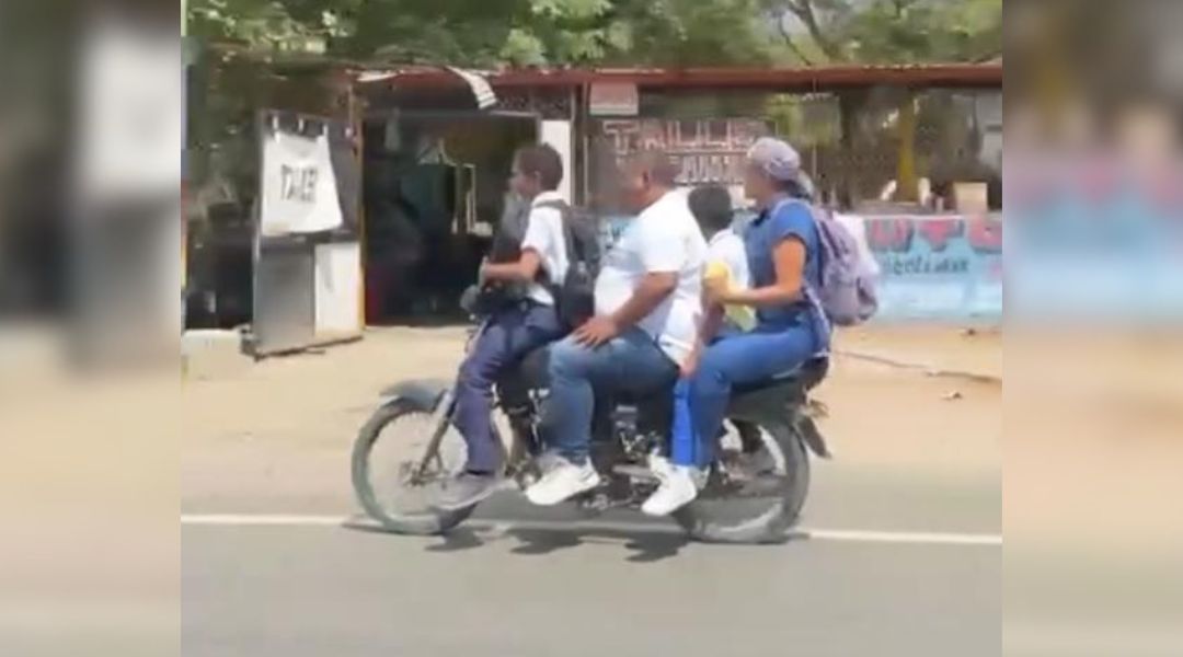 Las imágenes muestran cómo circulan por la vía sin el más mínimo cuidado, sobrecargando el vehículo y exponiendo, sobre todo, a los niños a un riesgo evidente. Una práctica que, aunque ilegal, parece haberse vuelto paisaje en muchas calles de la ciudad.
