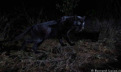 Un leopardo de color negro, también conocido como pantera negra, un animal raro en su especie, casi convertido en un mito local, fue fotografiado en el...
