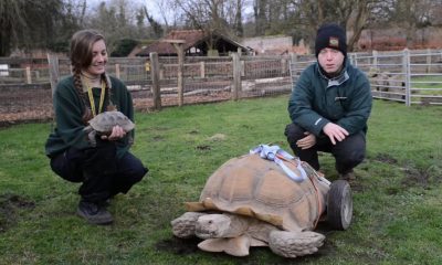 Se trata de una tortuga espolones africana de 22 años y 100 kilos de pesos, que vive en el parque temático Dinosaur Adventure, en Norfolk (Reino...